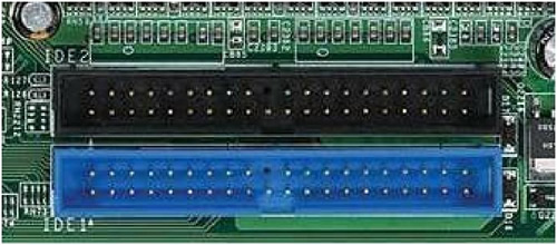 • IDE 硬盤接口(Integrated Drive Eectronics,并口,即電子集成驅動器)也稱作 "ATA硬盤" 或 "PATA硬盤",是早期機械硬盤的主要接口,ATA133 硬盤的理論速度可以達到 133MB/s(此速度為理論平均值),IDE 硬盤接口如圖 5 所示。