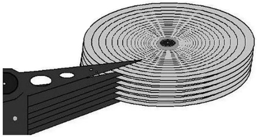 柱面又是什么呢?如果硬盤是由多個盤片組成的,每個盤面都被劃分為數目相等的磁道,那么所有盤片都會從外向內進行磁道編號,最外側的就是 0 磁道。具有相同編號的磁道會形成一個圓柱,這個圓柱就被稱作磁盤的柱面,如圖 4 所示。