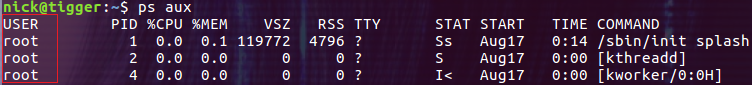 其實我們通過 ps aux 查看的結果中,第一列顯示的就是進程的 effective user:
