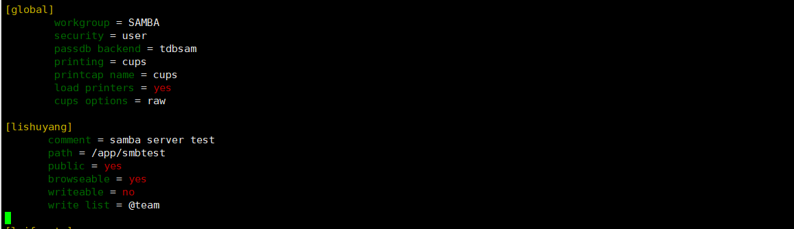 1、smb.conf繼承了.ini文件的格式,用[ ]分成了不同的部分