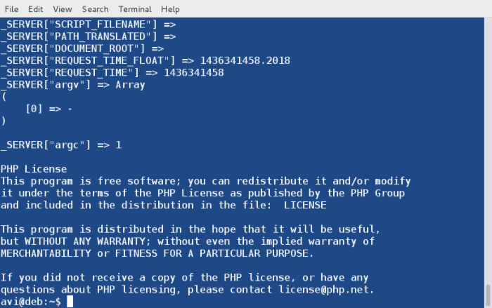 PHP是HTML的嵌入腳本,它便于開發(fā)人員快速寫出動態(tài)生成的頁面。PHP主要用于服務(wù)器端(而Javascript則用于客戶端)以通過HTTP生成動態(tài)網(wǎng)頁,然而,當你知道可以在Linux終端中不需要網(wǎng)頁瀏覽器來執(zhí)行PHP時,你或許會大為驚訝。