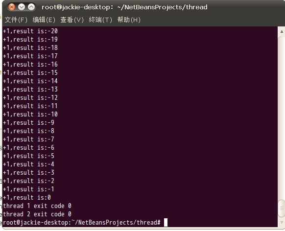 #include <stdio.h>#include <stdlib.h>#include <pthread.h>#include <unistd.h>#include <string.h>int num=0;void *add(void *arg) {//線程執行函數,執行500次加法 int i = 0,tmp; for (; i <500; i++) { tmp=num+1; num=tmp; printf("add+1,result is:%d/n",num); } return ((void *)0);}void *sub(void *arg)//線程執行函數,執行500次減法{ int i=0,tmp; for(;i<500;i++) { tmp=num-1; num=tmp; printf("sub-1,result is:%d/n",num); } return ((void *)0);}int main(int argc, char** argv) { pthread_t tid1,tid2; int err; void *tret; err=pthread_create(&tid1,NULL,add,NULL);//創建線程 if(err!=0) { printf("pthread_create error:%s/n",strerror(err)); exit(-1); } err=pthread_create(&tid2,NULL,sub,NULL); if(err!=0) { printf("pthread_create error:%s/n",strerror(err)); exit(-1); } err=pthread_join(tid1,&tret);//阻塞等待線程id為tid1的線程,直到該線程退出 if(err!=0) { printf("can not join with thread1:%s/n",strerror(err)); exit(-1); } printf("thread 1 exit code %d/n",(int)tret); err=pthread_join(tid2,&tret); if(err!=0) { printf("can not join with thread1:%s/n",strerror(err)); exit(-1); } printf("thread 2 exit code %d/n",(int)tret); return 0;}使用g++編譯該文件(g++ main.cpp -o main)。此時會報錯undefined reference to `pthread_create'。