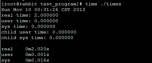 測試一個程序的執行時間,時間包括用戶CPU時間、系統CPU時間、時鐘時間。之前獲取之前時間都是在程序的main函數用time函數實現,這個只能粗略的計算程序的執行時間,不能準確的獲取其他時間。在看《APUE》時,書中有關程序時間測試程序,非常正規,提供這三個時間。如是,上網搜了一下,進行總結一下。