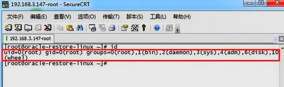 2、首選,確認(rèn)是用root用戶登錄系統(tǒng)的。輸入命令: id ,查看登錄用戶信息。