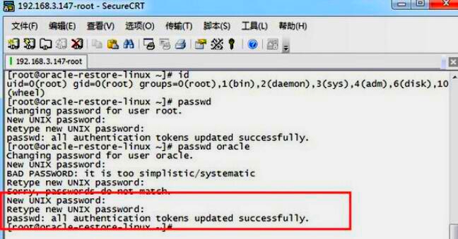 4、若修改其他用戶,如oracle 的密碼,可直接輸入passwd oracle.輸入兩遍性新密碼即可。