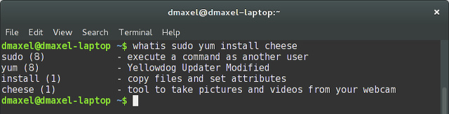 上圖的whatis sudo yum install cheese例子清楚的告訴你: