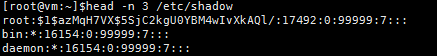 再來看看/etc/shadow這個文件存的又是啥(這里只取前三行):