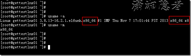[root@gettestlnx01 ~]# uname -aLinux gettestlnx01 3.8.13-16.2.1.el6uek.x86_64 #1 SMP Thu Nov 7 17:01:44 PST 2013 x86_64 x86_64 x86_64 GNU/Linux[root@gettestlnx01 ~]# uname -m