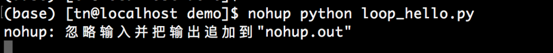 使用nohup python loop_hello.py &運行程序,效果如下: