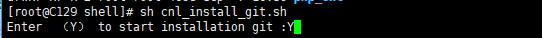 #!/bin/bashsource ./cnl_function.sh#function of installing gitinstall_git(){  #download the compressed package  cd /usr/local/src  #if compressed package is empty then download  [ -f git-2.2.1.tar.gz ] || wget https://www.kernel.org/pub/software/scm/git/git-2.2.1.tar.gz  check_ok  tar -zxf git-2.2.1.tar.gz  check_ok  [ -d /usr/local/git ] && mv /usr/local/git /usr/local/git_`date +%s`    cd git-2.2.1  check_ok    for p in expat-devel   do     myum $p  done  make prefix=/usr/local/git all  make prefix=/usr/local/git install  check_ok    if ! grep '^git:' /etc/group  then     groupadd git  fi      if ! grep '^git:' /etc/passwd  then    useradd -m git -s /usr/local/git/bin/git-shell -g git  fi    check_ok  ln -s /usr/local/git/bin/git /usr/local/bin/git    echo "git is installed finish."  }read -p "Enter (Y) to start installation git :" nif [ $n == 'Y' ]then   echo "Start installation==============================================================================================================================>"  install_gitelse   echo "Cancel the installation."fi如下圖,我將上面代碼保存位cnl_install_git.sh