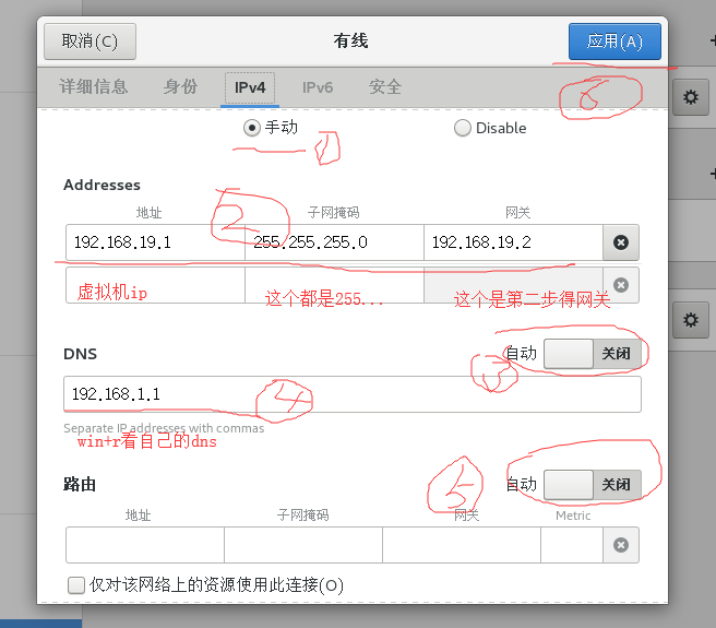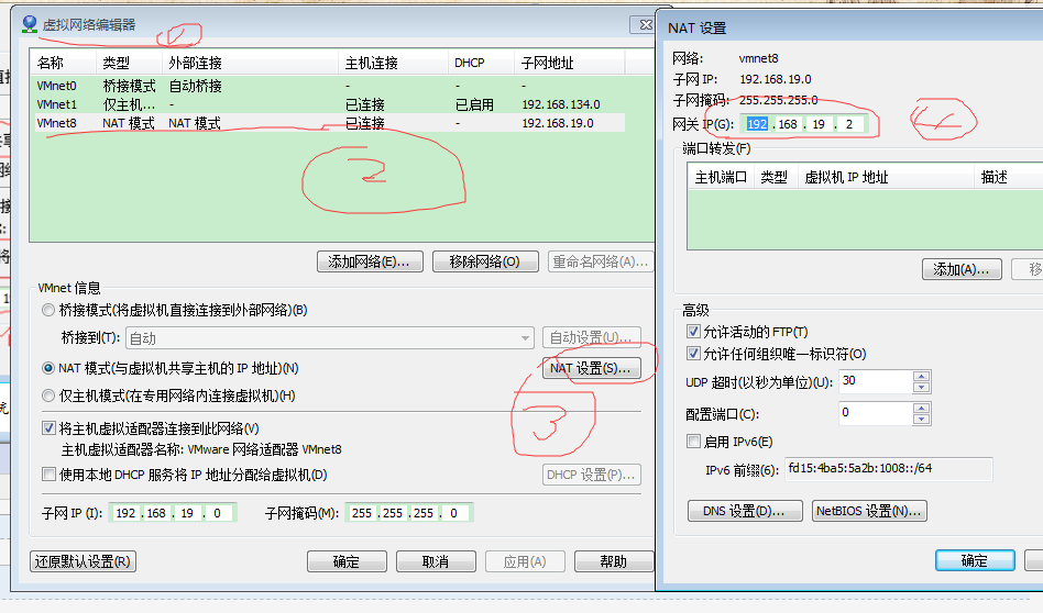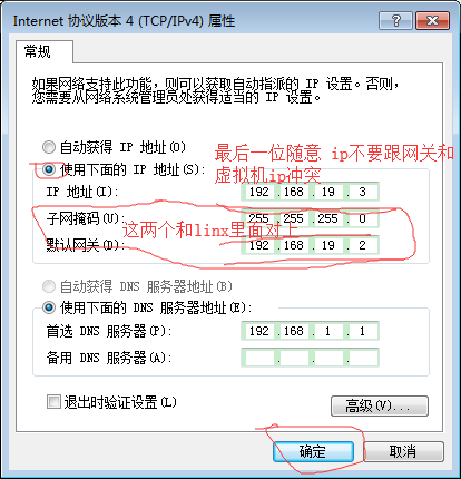 6、配置虛擬機的ip ip地址前三位要和網關前三位保持一致 子網掩碼都是一樣的 網關要和虛擬機編輯器的網關保持一致