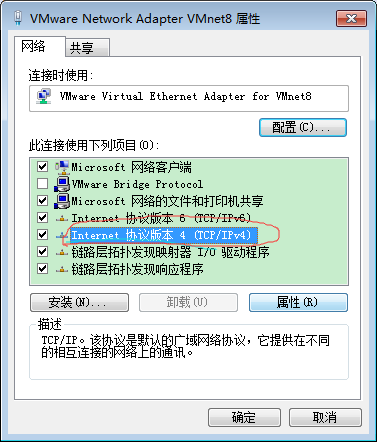 7、打開本地網絡連接――更改適配器――找到vMware8 有的可能不一樣 把鼠標放上去會自動出來一個提示――右擊――屬性
