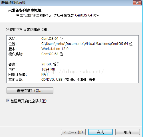 最后查看信息,點(diǎn)擊完成,此時(shí)已經(jīng)在虛擬機(jī)上已經(jīng)安裝好了Linux操作系統(tǒng),