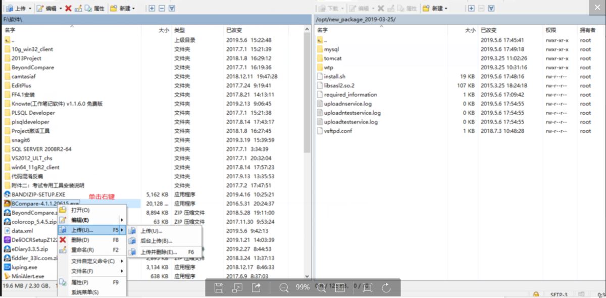 (2)、在左側(cè)列表,選擇要上傳文件,單擊右鍵選擇上傳即可