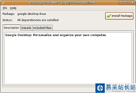 安裝從 http://desktop.google.com/linux/ 下載 Google 桌面 Linux 版 (選 .deb 文件),下載完畢后雙擊運行該軟件包。