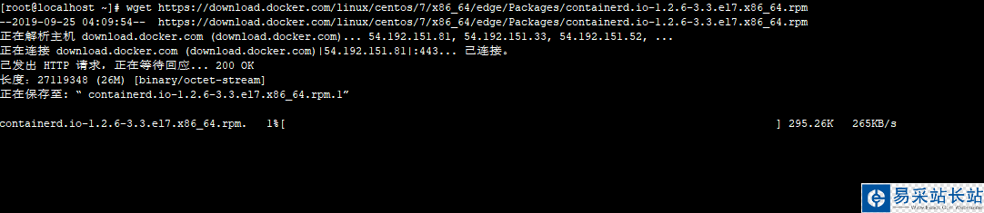 [root@localhost ~]#wget https://download.docker.com/linux/centos/7/x86_64/edge/Packages/containerd.io-1.2.6-3.3.el7.x86_64.rpm //下載相關軟件包