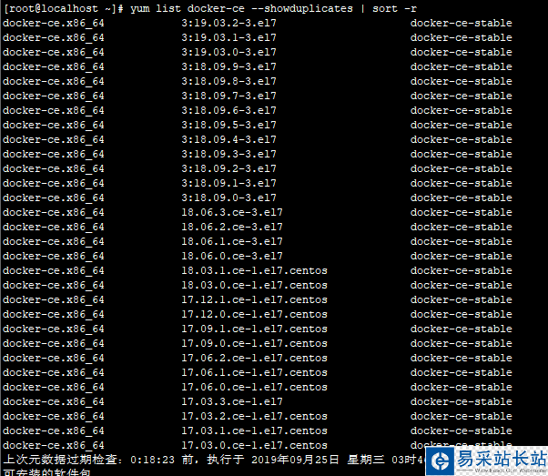 [root@localhost ~]# yum list docker-ce --showduplicates | sort -r //檢查相應的軟件包版本