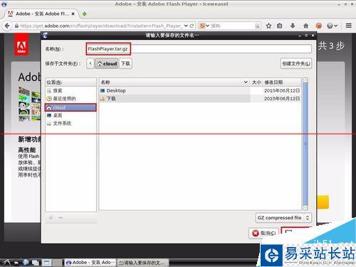 3、在彈出的對話框中,選擇:"保存文件",然后點:"確定"。保存文件名為:"FlashPlayer.tar.gz",保存到用戶目錄下,等待下載完成。