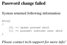 由于一些原因, 如果口令修改失敗, 你可以參考下面提示獲得更多詳細的錯誤信息: