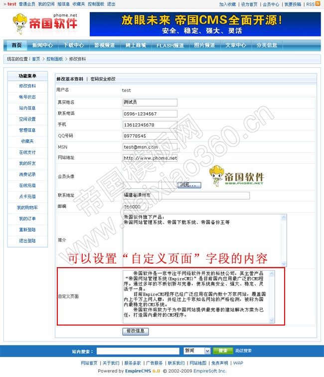 今天我們解密的是如何使用帝國cms6.0新增的會員空間單頁面功能。
