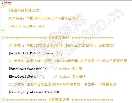 COOKIE設置參數(PHPwind跟帝國CMS不在一個域名下需要修改,否則不用修改設置)