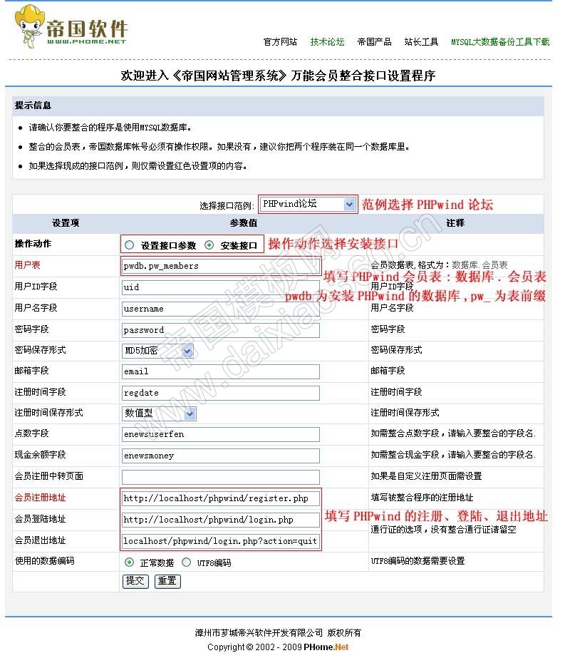 帝國CMS安裝目錄參數:(相對于PHPwind安裝目錄,后面需加/)