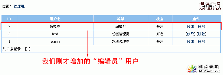 2、增加用戶后,返回管理用戶,我們會看到剛才增加的“編輯員”用戶,如下圖:
