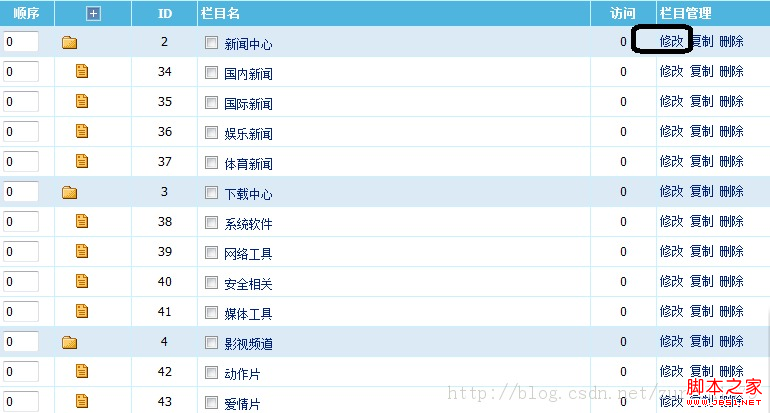 2. 進入管理欄目后選擇“修改”,如下圖所示: