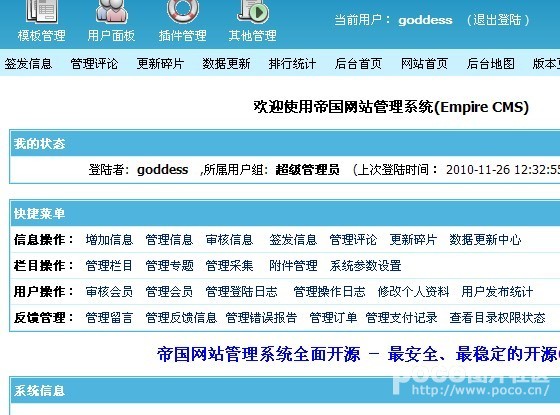 今天接到網(wǎng)友詢問怎么修改后臺(tái)登錄界面及后臺(tái)界面,如下圖,后臺(tái)登入界面和歡迎界面的logo和文字可以改成別的不,比如我想把“帝國網(wǎng)站管理系統(tǒng)”改成我自己建的網(wǎng)站的名字,比如“某某某網(wǎng)站后臺(tái)”之類的!