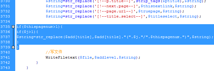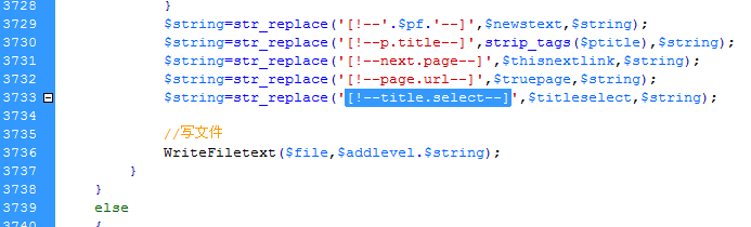 更改/e/class/functions.php ,查找[!--title.select--],帝國7.5版本位置大約是在3734行處,如下圖: