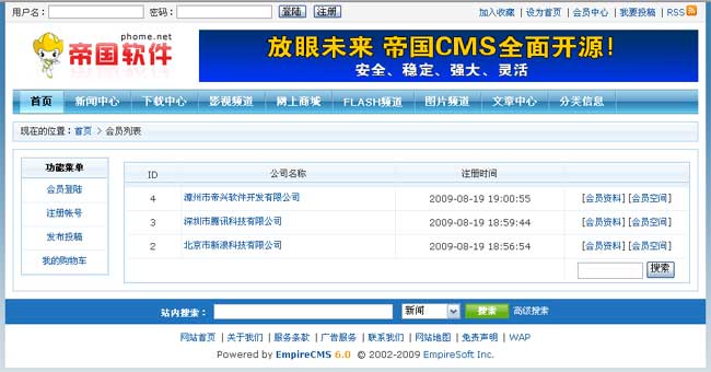 2、會員列表用tempid變量指定使用的列表模板:/e/member/list/?tempid=模板文件。