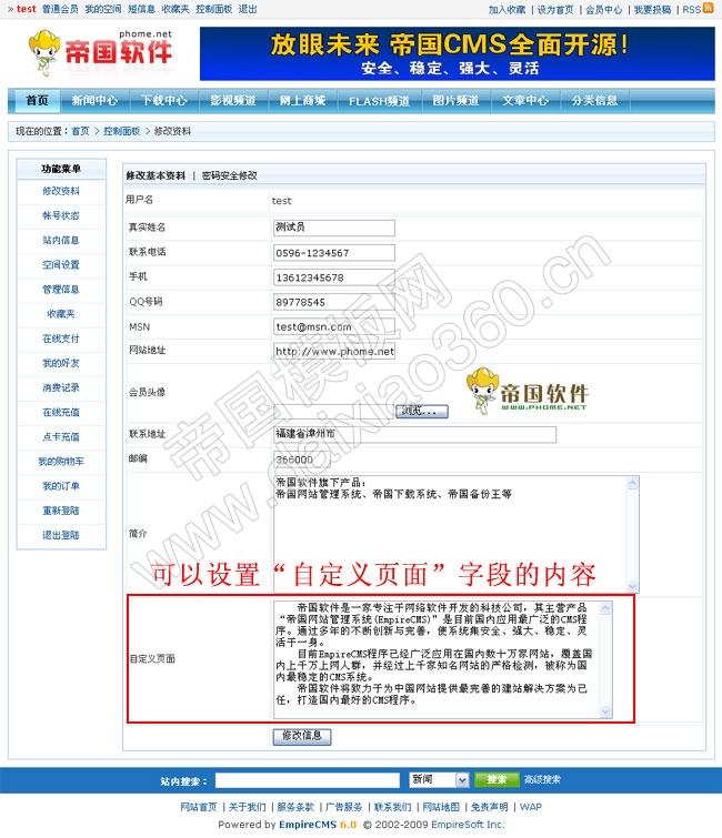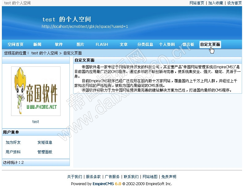 今天我們解密的是如何使用帝國CMS6.0新增的會員空間單頁面功能。