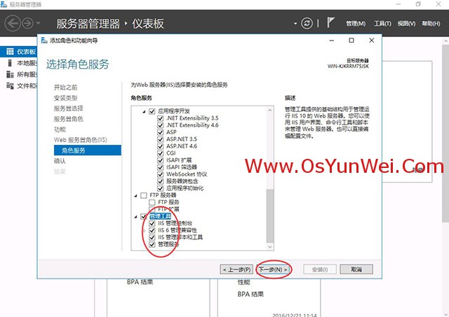 確保CGI被選中,其他的角色服務(wù)根據(jù)需要選擇,如果不知道如何選擇,建議選擇全部功能。