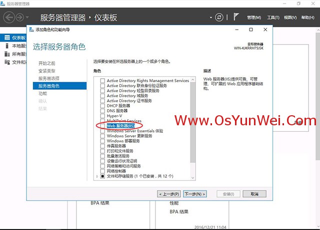 選擇:Web服務(wù)器(IIS)