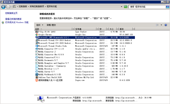 點(diǎn)擊開始=》控制面板=》程序和功能,打開“程序和功能“對(duì)話框。檢查.Net Framework是否已經(jīng)安裝,如果沒有安裝請(qǐng)執(zhí)行1.3。