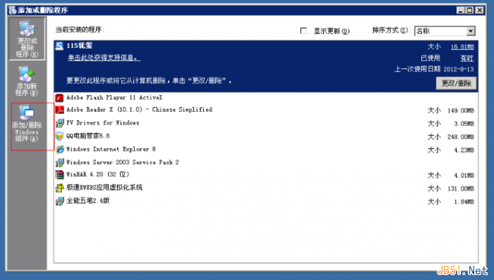 出現如下界面點擊“添加/刪除windows組件(a) ”如圖