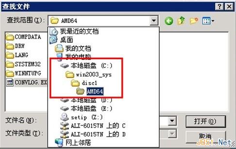 點擊圖片中的“瀏覽”選中“C:/win2003_sys/disc1/AMD64”如圖
