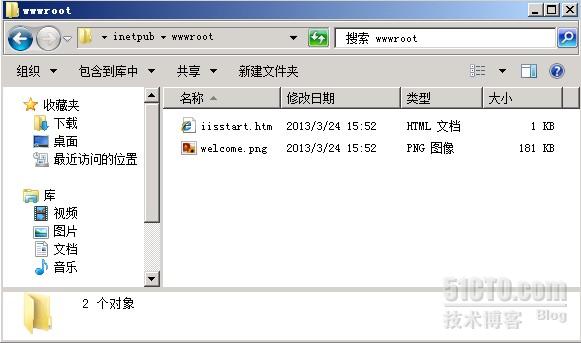打開這個主目錄,可以看到里面已經有一個名為iisstart.htm的網頁文件以及一張圖片,這也就是我們剛才所看到的默認網站所顯示的網頁。
