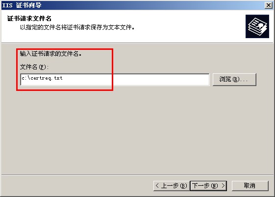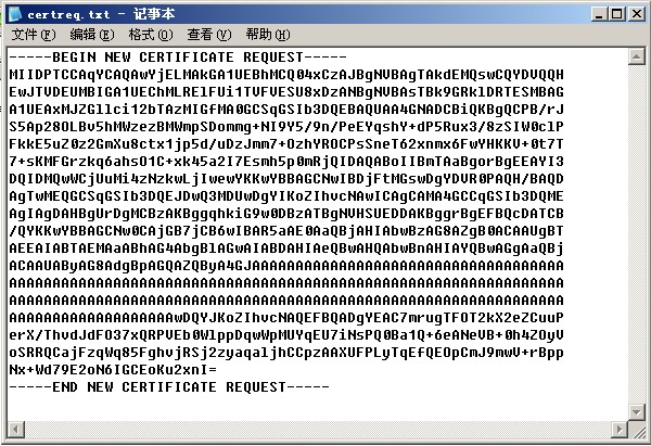 8.證書請求文件名,默認是保存在C盤下,打開后會看到如下一串加密的字符串。