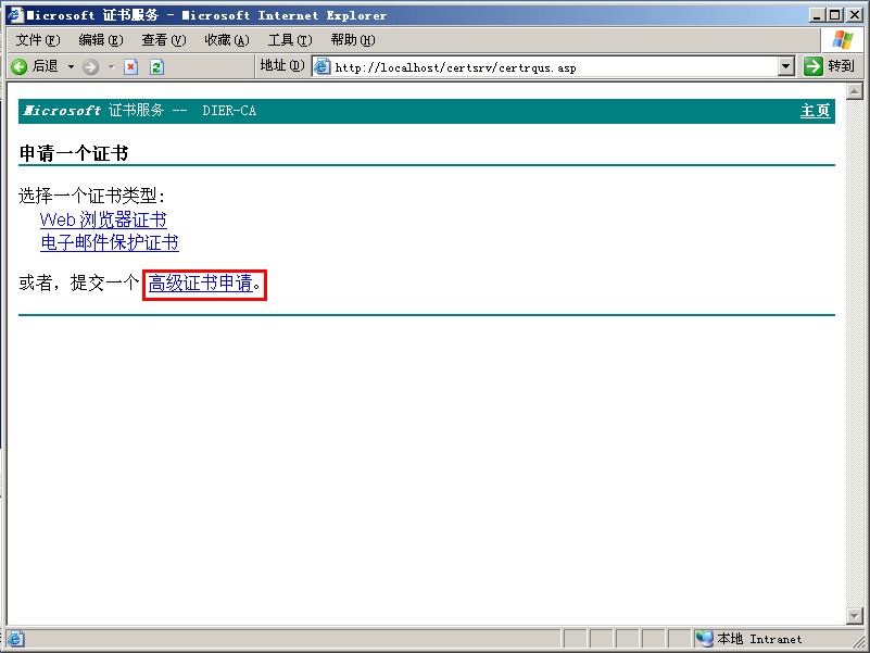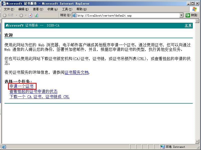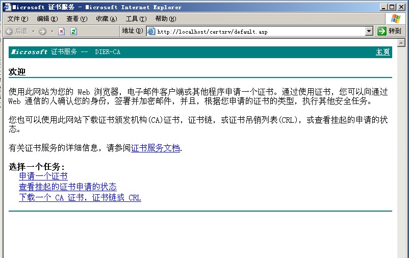 7.打開相應的頁面,可以看到如下圖,至此,CA服務器基本已架設完成。