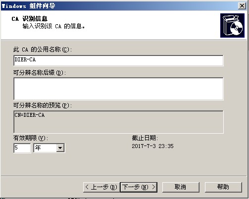 3.CA識別信息,這里可以為你的CA服務器起個名字。