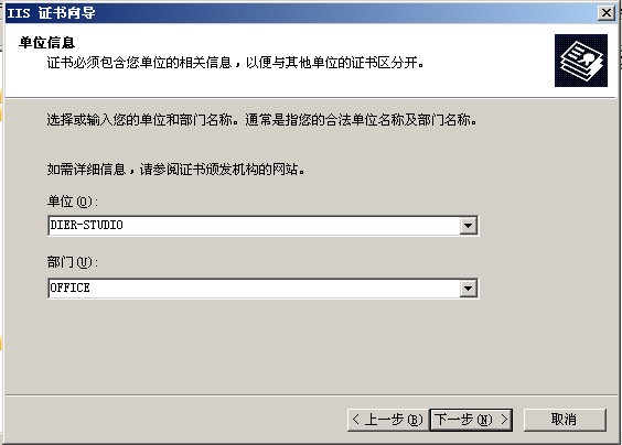 4.單位信息,這里需要自己填寫,至于寫什么,自己可以決定,這些信息會在證書中顯示。