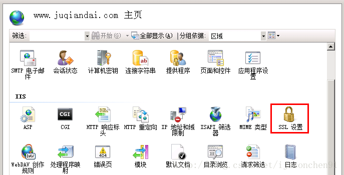 2.啟動IIS管理器,選擇網站,雙擊“SSL設置”