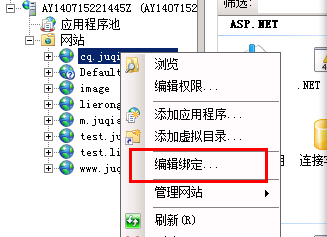 6.將SSL證書和網站綁定,先選擇需要使用證書的網站,右擊后點擊“編輯綁定”