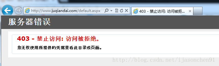 4.“要求SSL”選項,如果沒有選中,則用戶可以通過HTTPs,也可以通過HTTP來訪問,如果“要求SSL”被選中,則用戶必須通過HTTPS訪問,若用戶通過HTTP訪問,會出現如下提示: