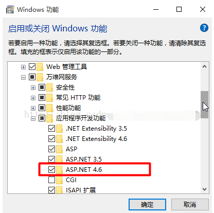 2、未安裝.netframework4.0:解決完上述兩個問題,心中很是開心啊,終于可以看看系統長什么樣子了,可是問題出現了,win10操作系統是自帶.net4.6的,并且.net是向下兼容的,所以說如果win10安裝了.net4.6那就應該可以支持發布的web的。Windows+X+P打開控制面板找到啟用或關閉Windows功能,查看發現已經安裝了.net4.6.如下: