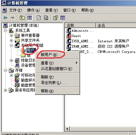 2.找到本地用戶和組,然后用戶,新建用戶