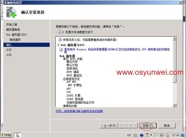 確保“CGI”被選中,其他的角色服務可根據自己的需要勾選