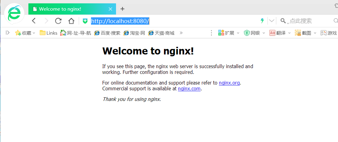 5.嘗試打開 http://localhost:8080/ 出現(xiàn)以下,就說(shuō)明nginx安裝成功了