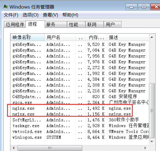 4.雙擊主程序運(yùn)行,可以看到nginx已經(jīng)在進(jìn)程里面運(yùn)行了。